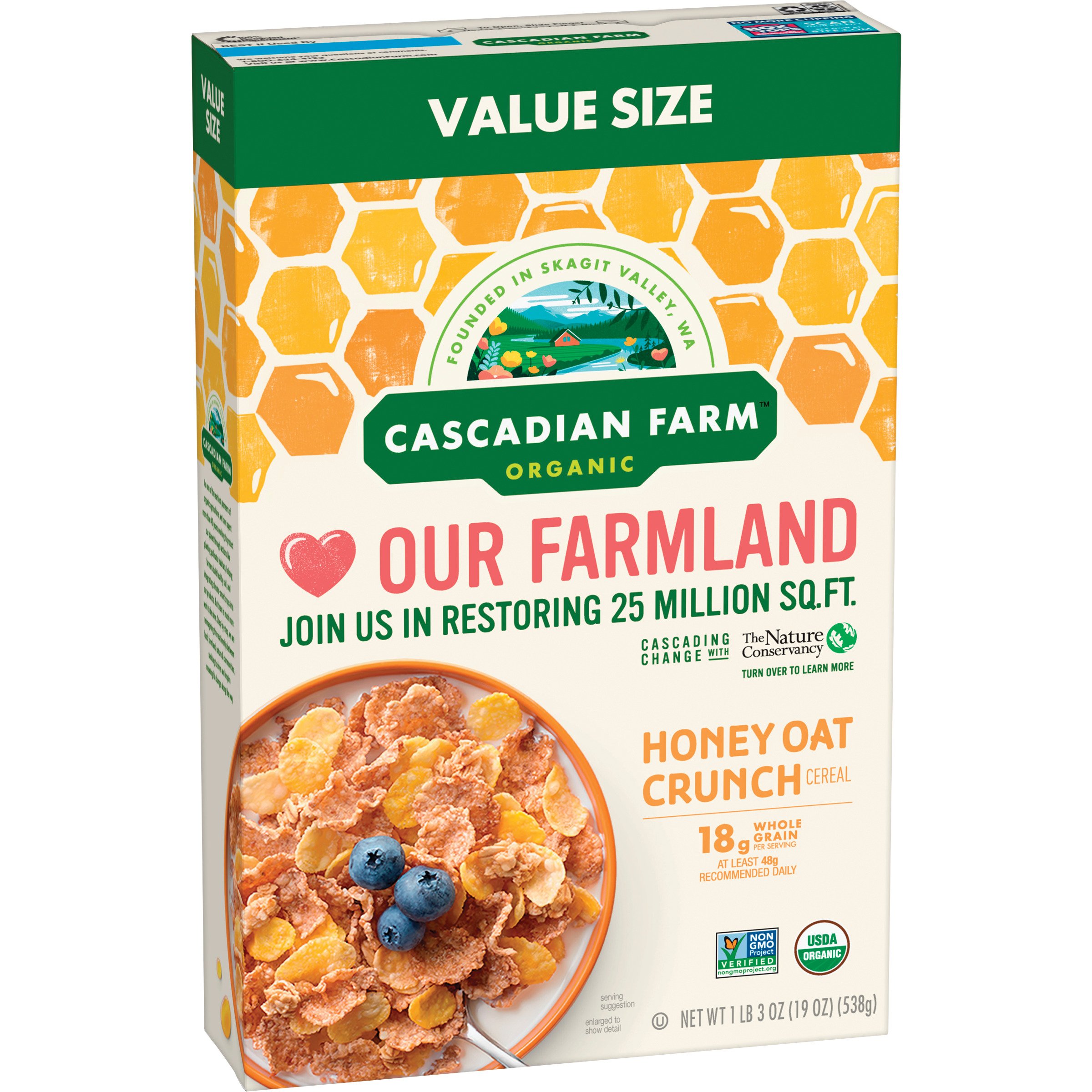 Honey Crunch Cereal Honey Crunch Cereal / Since our founding in 1972, cascadian farm has been recognized as a pioneer in organic farming.