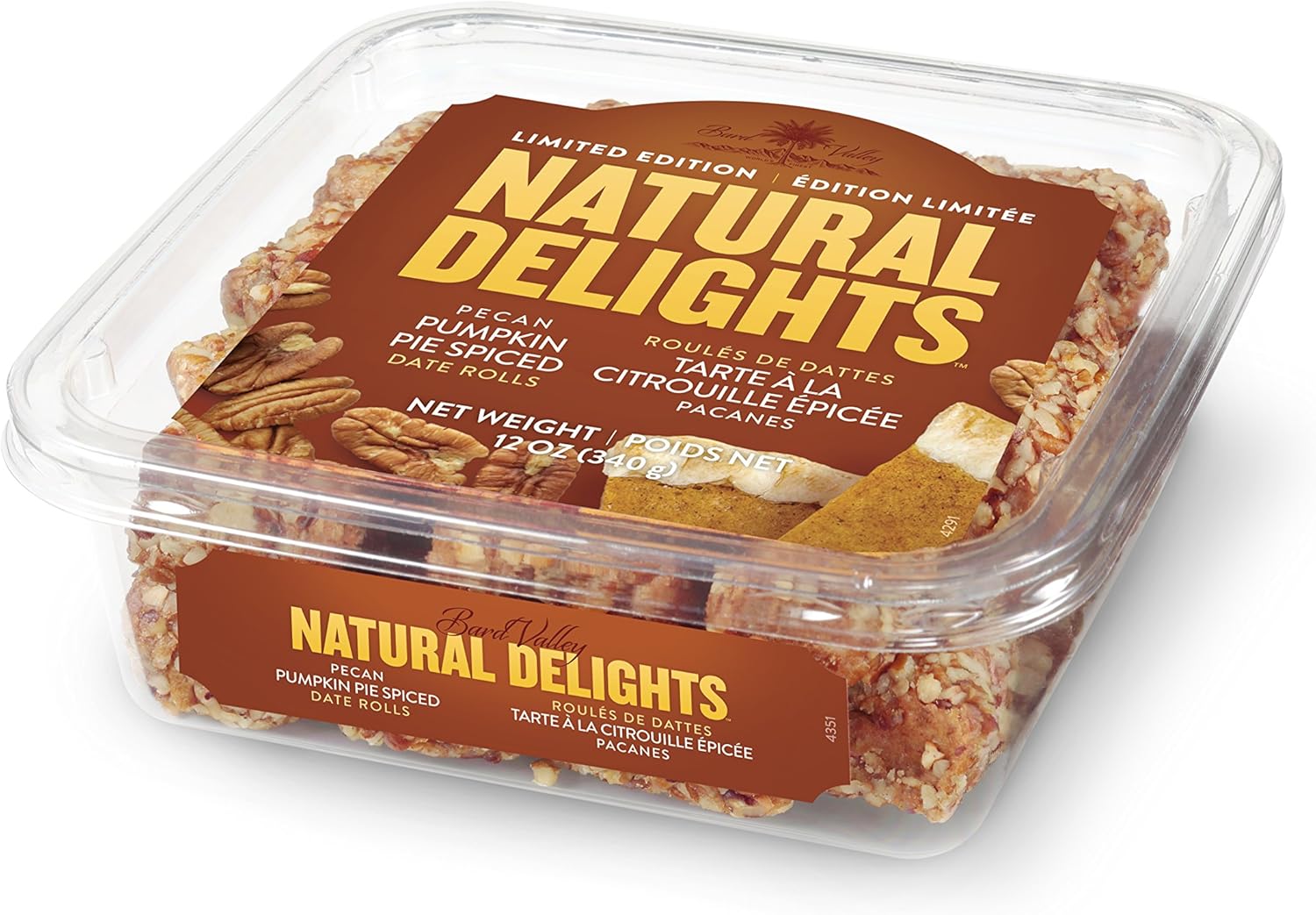 Natural Delights Pumpkin Spice Dates Natural Delights Pumpkin Spice Dates : Sweet sticky medjool dates in lincoln log shape infused with fall spices and coated with pecans?
