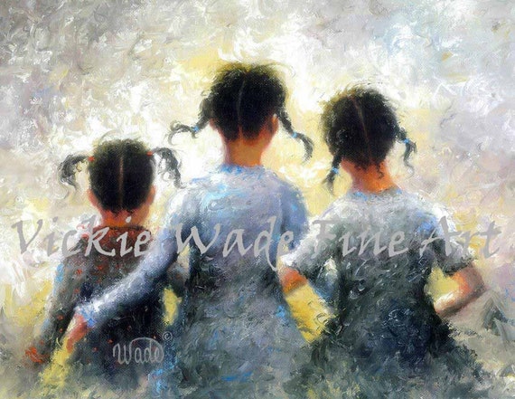 Three Sisters African American Art Print Pigtails Three Etsy - Three black haired girls, three sisters, wall art for sisters, loving sisters, blue and yellow dresses.